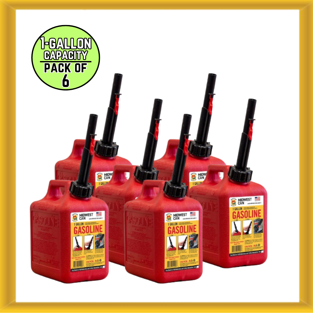 Midwest Can 1-Gallon Auto Shut Off Gasoline Can with Quick-Flow Spout (6 Pack)